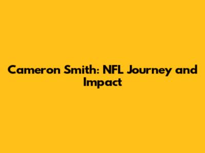 Cameron Smith: NFL Journey And Impact